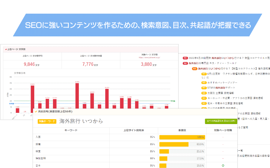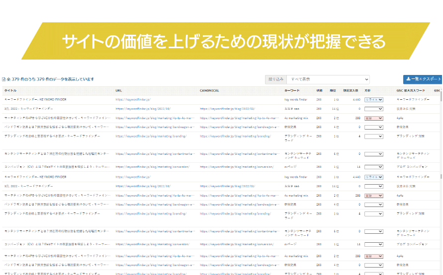 このキーワードファインダーを使えば、効果的なキーワードを自動取得したり、Webサイト(コンテンツ)の問題点を見つけて効果的なSEO対策が促進できます。